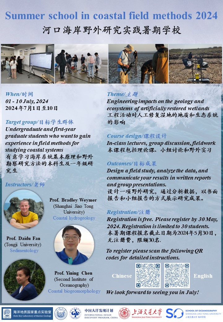 首期“海岸研究野外实践方法”暑期课程将由kaiyun电子官网(徐汇校区)与同济大学海洋地质国家重点实验室(临港)共同举办。