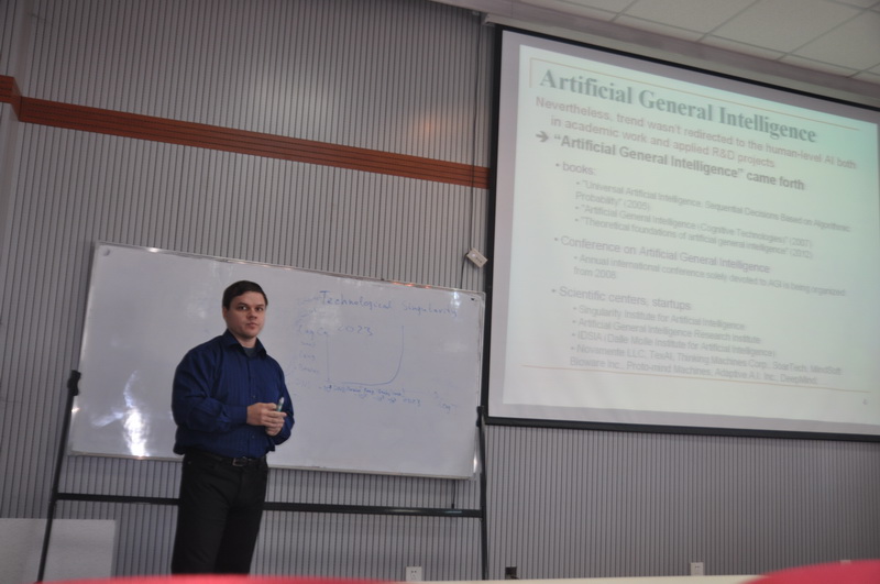应我校sunbet申搏官方网站副院长欧阳继红教授的邀请,2014年11月30日-12月03日俄罗斯圣彼得堡国立大学和圣彼得堡国立信息技术、力学与光学大学计算机学院Aleksei Potapov教授来sunbet官网访问。在访问期间,为学院师生作了题目分别为《Minimum Description Length Principle in Computer Vision and Machine Learning》和《Universal Induction and Metacomputations in Artificial General Intelligence》学术报告。
