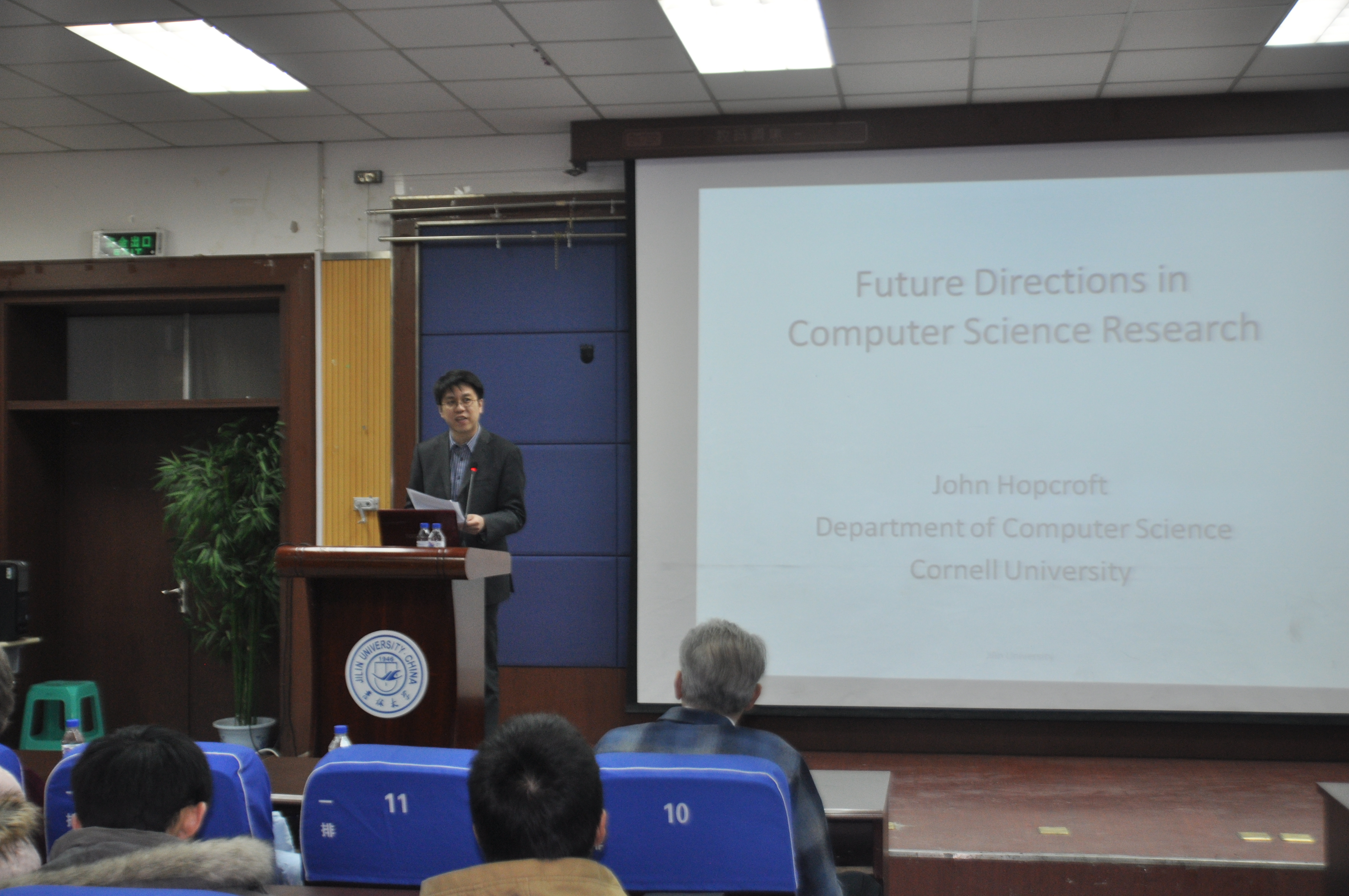 Hopcroft教授在报告中指出了在过去计算机科学研究过程中存在的问题和不足,同时提出编程语言、编译器、操作系统、数据结构和算法等基础研究仍然是计算机科学研究领域的重要话题。教授还指出随着大量数字信息的出现,今后研究的重点会逐渐转变为网络结构、大型数据集信息提取、大型数据信息的合并计算等。Hopcroft教授的报告非常精彩,对今后计算机科学的发展方向做了简洁的描述,同时也指出了未来的计算机科学发展需要更多基础科学知识的支撑。