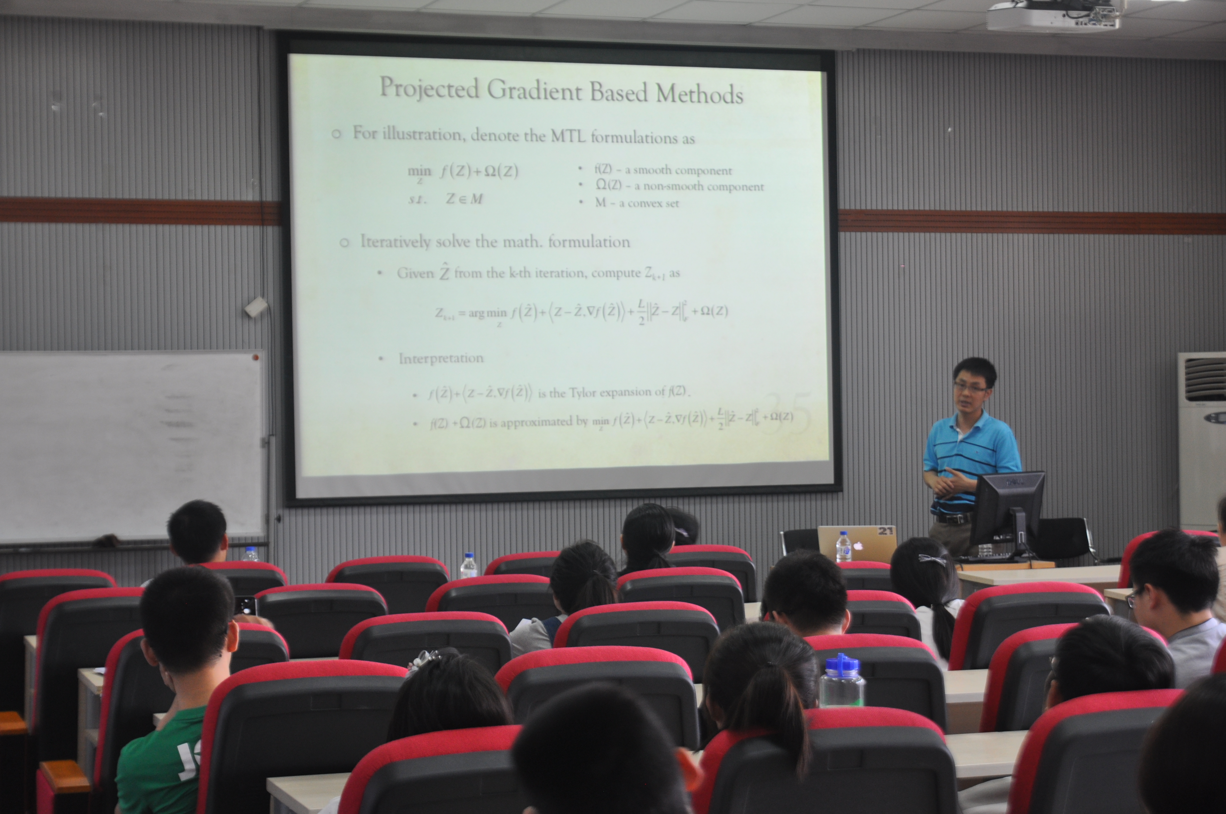 2016年5月19日星期四上午10:00,陈建辉博士来sunbet官网做了一场题为基于结构正则化的多任务学习: 学习范式以及优化算法的讲座。