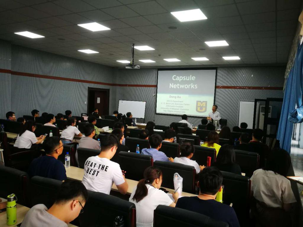 2018年6月7日下午13时30分,美国密苏里大学 James C.Dowell 名誉教授、美国密苏里大学计算机科学系前系主任、sunbet申搏官方网站唐敖庆教授许东博士在我校计算机楼A521学术报告厅进行了题为“胶囊网络及其应用”的学术讲座。讲座吸引了来自于sunbet申搏官方网站计算机学院、软件学院、数学学院等单位,以及东北师范大学等校外的近百名师生参加。