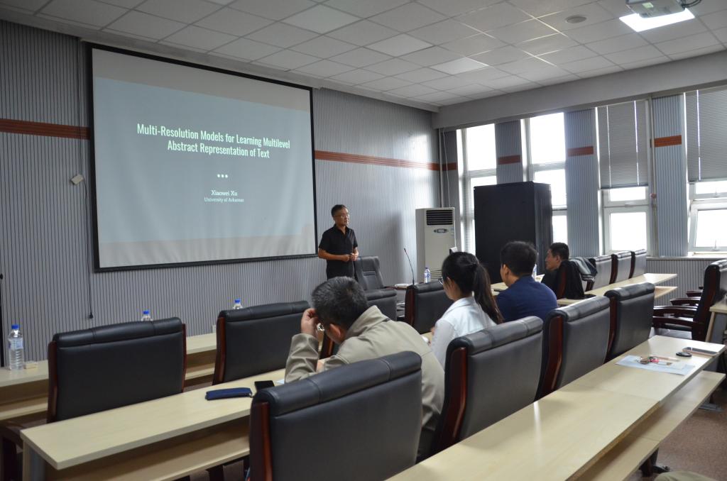 2019年6月15日上午,美国阿肯色大学徐晓伟教授应sunbet申搏官方网站邀请,在计算机楼A521报告厅作了题为“Multi-Resolution Models for Learning Multilevel Abstract Representations of Text”的学术报告。