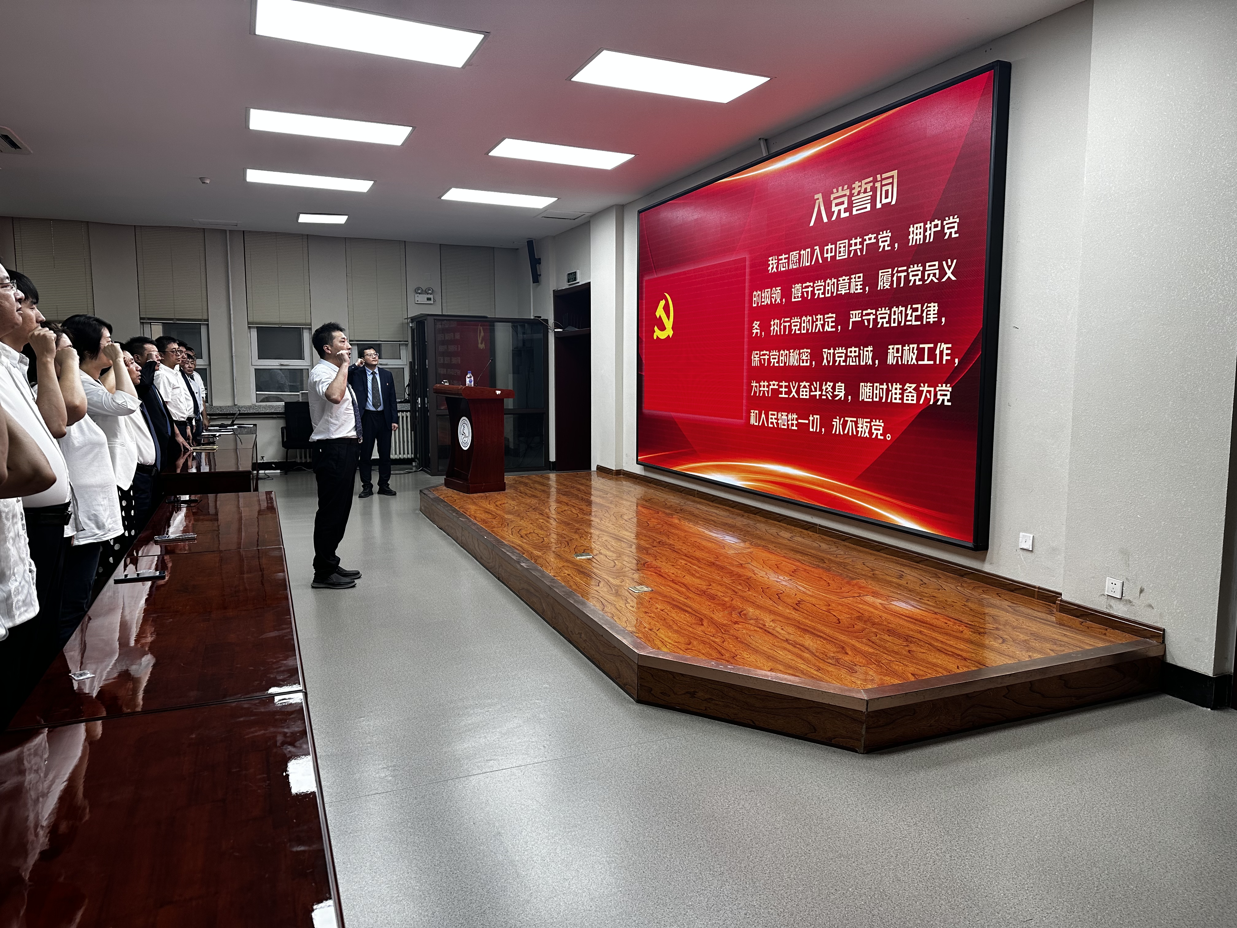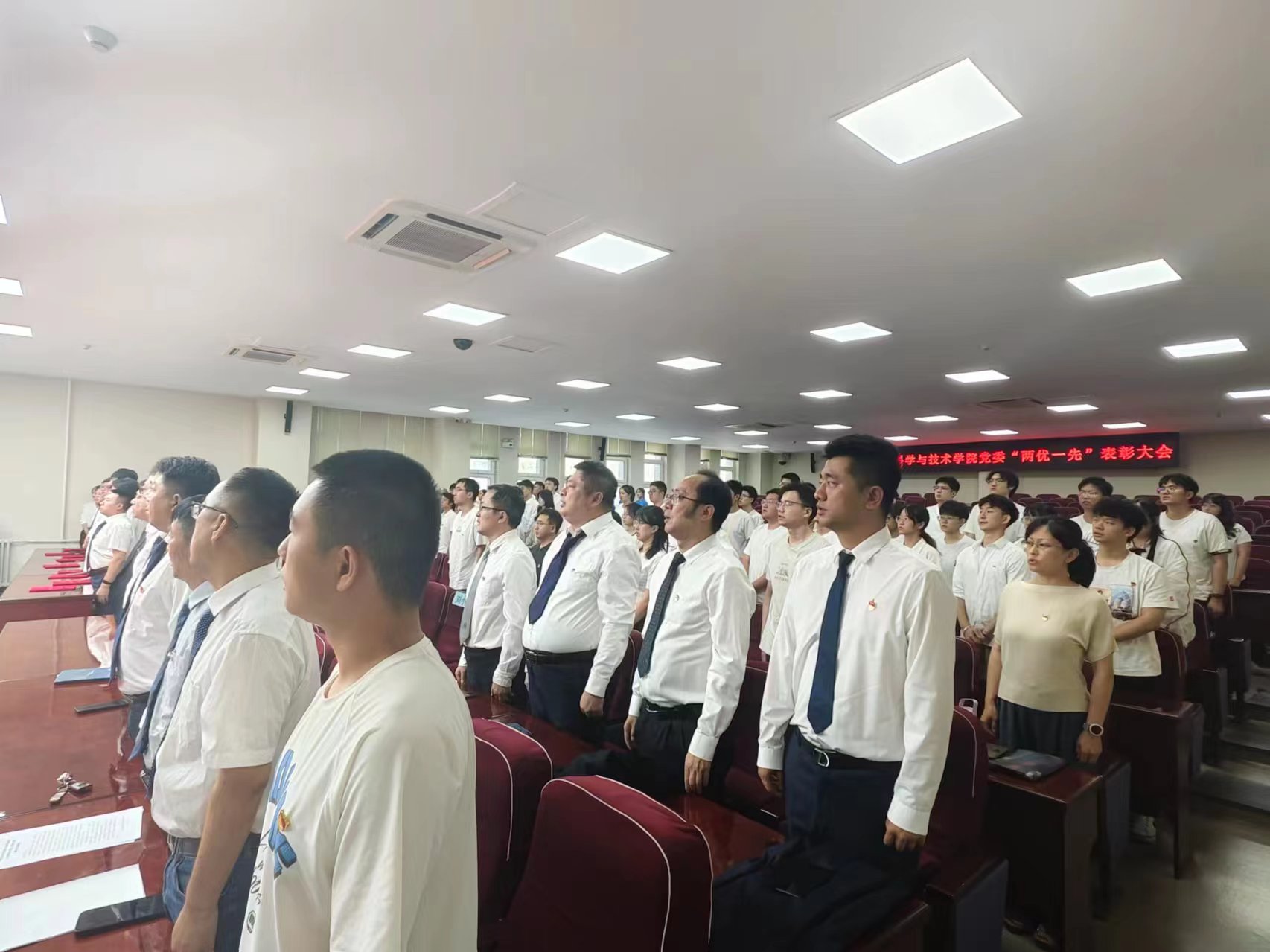 首先,党委副书记杜天宝同志带领与会全体党员面向鲜红党旗,重温入党誓词,用铿锵有力的誓言,表达对党的庄严承诺和为党为人民服务的坚定信念。随后,党委副书记高战国同志宣读了《中共sunbet申搏官方网站委员会关于表彰优秀共产党员、优秀党务工作者和先进基层党支部的决定》,与会领导为获奖支部和个人颁发了荣誉证书。