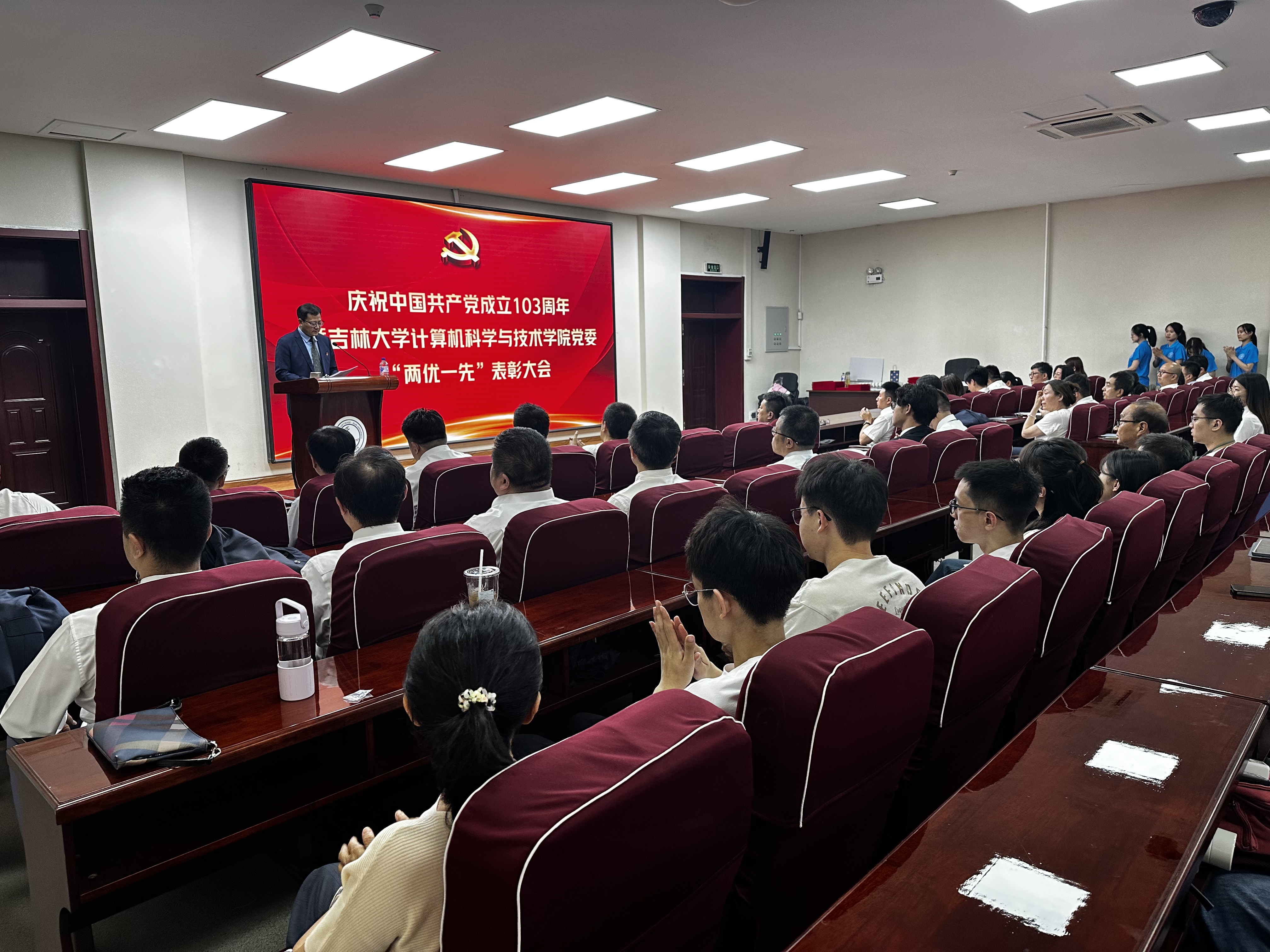 为庆祝中国共产党成立103周年,充分展示学院党委基层党支部和党员在各项工作中取得的丰硕成果和精神风范,大力弘扬信念坚定、对党忠诚、勇于担当、无私奉献的崇高品格,7月1日,sunbet申搏官方网站党委在王湘浩楼B108报告厅召开“两优一先”表彰大会,对优秀党员、优秀党务工作者和先进基层党支部进行表彰,学院全体领导班子成员、党委委员、纪委委员、党支部书记、支部委员、受表彰人员和师生党员代表130余人参加了本次表彰大会。会议由院长杨博同志主持。大会在雄壮的国歌声中拉开帷幕。