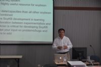 2012年6月12日上午许东教授于为sunbet官网师生作了《关于大豆信息系统研究》的专题报告。报告会上,许东教授首先介绍了计算机学科以及生物信息学的国内外发展状况,给同学们带来了国际上最前沿的科学技术信息。并鼓励同学们以正确的姿态投入到科研工作当中。此外,许东教授结合其课题组近几年的研究工作成果,为大家系统的介绍了他们刚刚发布不久的大豆信息系统平台。该系统包含了当前世界上最完整、完善的大豆相关数据,并具有目前最科学有效的数据管理方法,是当前大豆研究中最佳的综合信息平台。从数据量上来看,许东教授与工作组所构建的系统存储有海量数据,是目前大豆研究最完整、最细致的数据库体系。多层面,多内容,从基因开始,包括小RNA,小分子,蛋白一直到植物性状都有非常详尽的数据;从数据组织模式来说,该系统把大量复杂程度极高的数据信息整合在一个框架之内,非常有效的进行管理,为研究人员和普通用户提供了细致入微,全方位个性化的服务。最后,许东教授也指出,该信息系统的主要目的是开创一种大豆研究领域内完整的、先进的大规模数据组织体系,为相关研究人员提供清晰高效的科研辅助,为工业生产提供便利、降低成本,为世界农业,尤其是大豆的育种提供有效的指导性信息支持。