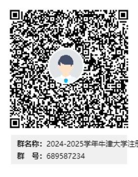 请申请人将由教学科研单位相关负责人签字并加盖单位公章的申请表(附件2)于12月1日(星期五)16:00之前交至国际合作与交流处交流与学生项目管理科(中心校区鼎新楼A628室),并扫码加入以下qq群。同时发送“四、申报材料”中所述材料电子版至xiehm@jlu.edu.cn。最终录取结果由牛津大学相关学院确定。