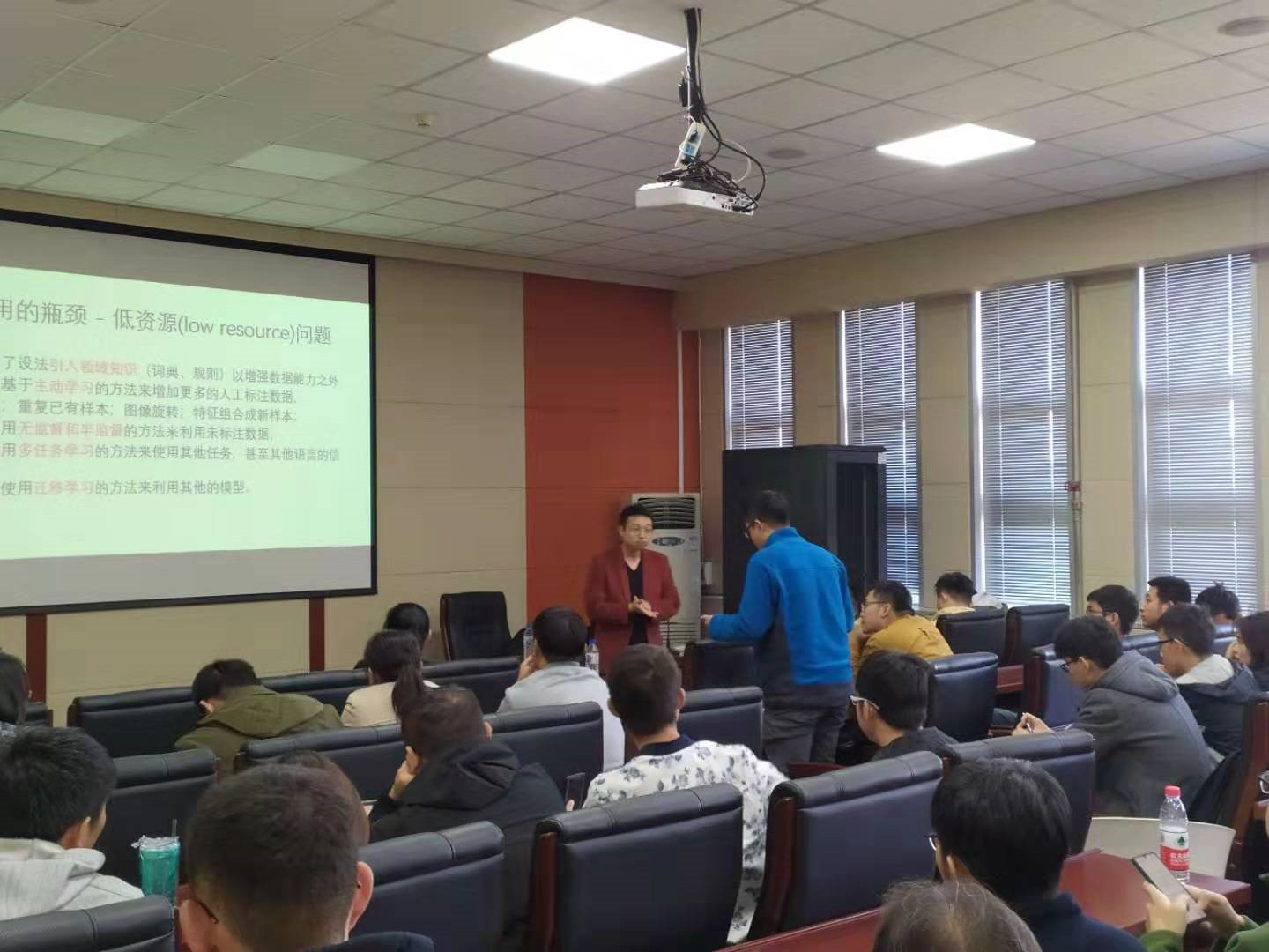 在本次报告中,鞠奇博士从人工智能的基本原理入手,由浅入深的为在场同学详细讲解了人工智能的发展、机器学习的基本原理。而后,通过例举腾讯在内容安全分析方面的实践,介绍了深度学习技术在自然语言处理、计算机视觉及语音识别等领域的应用,给出了深度学习技术的落地技巧,并提出了技术展望。此外,鞠奇博士对人工智能同大数据技术和云计算技术的结合给出了自己的看法。报告最后,鞠奇博士悉心回答到场同学的问题,并从面试官的角度给大家分享了几点面试技巧。本次报告受到了广大师生的热烈响应。