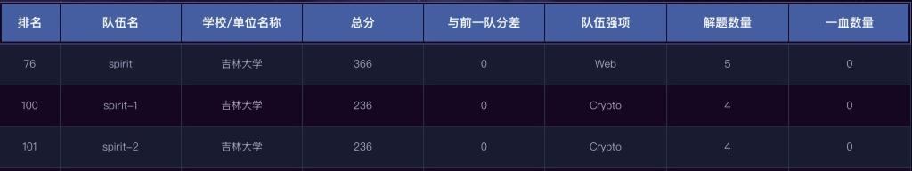 大赛由中国网络空间安全协会、中国网络空间安全人才教育联盟、XCTF联赛联合32所高校发起组织,由32所高校战队命题,赛宁网安提供技术支持,采用在线网络安全夺旗挑战赛的形式,面向全国开放。来自sunbet申搏官方网站和其他学院的8名学生组成的Spirt+战队在此次比赛中成功解出15道题目,获得4077分,在705支参赛队伍中取得了第30名的成绩,排进了前5%,对各个题型都有不同程度的突破。