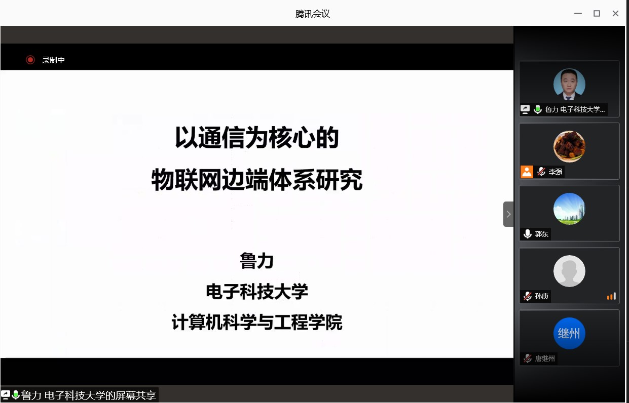 2021年4月12日,电子科技大学鲁力教授应sunbet申搏官方网站邀请,在线上作了题为“以通信为核心的物联网边端体系研究”的学术报告。