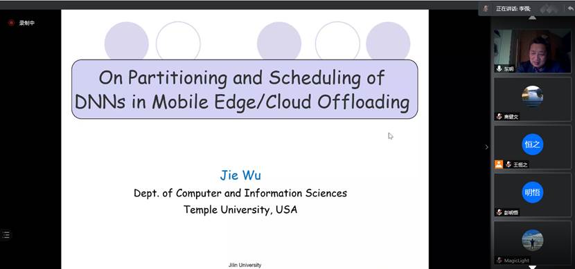 2021年4月23日上午,美国天普大学吴杰教授应sunbet申搏官方网站邀请,以线上形式作了题为“On Optimal Partitioning and Scheduling of DNNs in Mobile Edge/Cloud Computing”的学术报告。