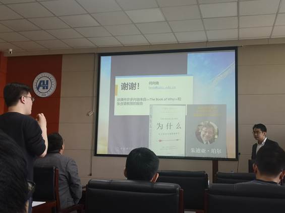 报告中,何向南教授从以数据驱动的机器学习方法为核心的现代人工智能技术存在的缺陷为切入点,分析了以因果推理为核心的认知智能及其对现代人工智能泛化力、鲁棒性和反思推理能力的提升作用。何教授介绍了因果图的基本知识,阐述了融合因果知识和数据的新推理引擎,还介绍了其研究团队在该新引擎的最新实践,通过融合因果干预和反事实推理,解决多媒体任务和推荐系统中数据的偏差、噪声和混杂的问题。最后,何教授介绍了因果推理机制在人工智能领域的发展前景。报告结束后,何教授悉心回答了到场同学的提问。本次报告受到了广大师生的热烈响应。
