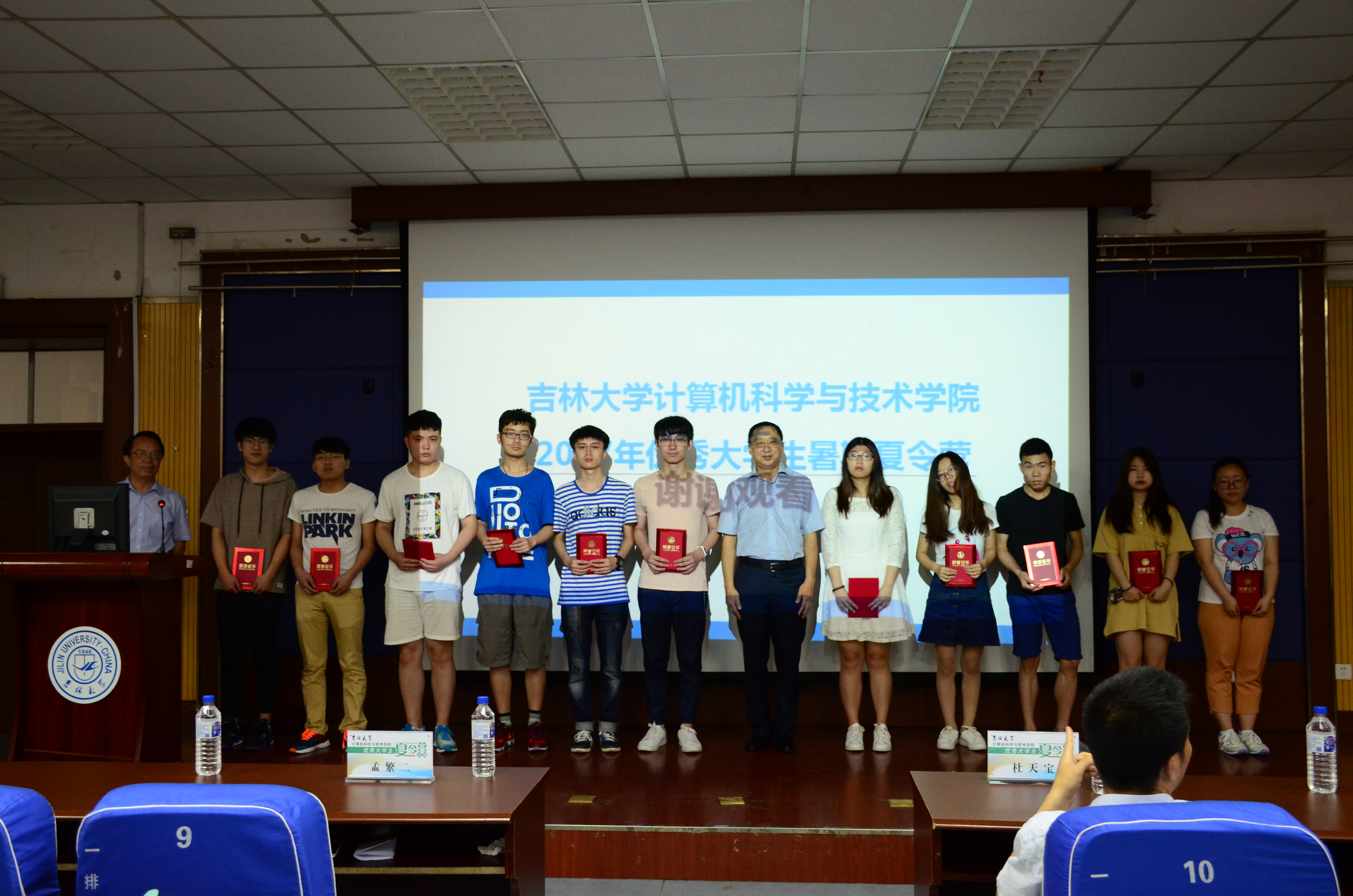 7月10日上午,全体夏令营营员于计算机大楼门前合影留念,随后在计算机楼B108隆重举行2017年sunbet申搏官方网站“第五届优秀大学生暑期夏令营”闭营仪式暨优秀营员颁奖典礼。闭幕式由李文辉副院长主持,杜天宝副书记就研究生就业和管理情况进行了详细介绍。学院党委书记孟繁二老师致闭幕词,对于本次活动的成功举办孟书记感到非常欣慰和满意,他充分表达了对所有工作人员的感谢以及对获奖营员的祝贺,殷切希望这些优秀的营员能够继续到sunbet申搏官方网站深造。最后孟繁二书记和杜天宝副书记分别为优秀营员代表颁奖。至此,sunbet申搏官方网站“第五届优秀大学生暑期夏令营”活动圆满落下帷幕。
