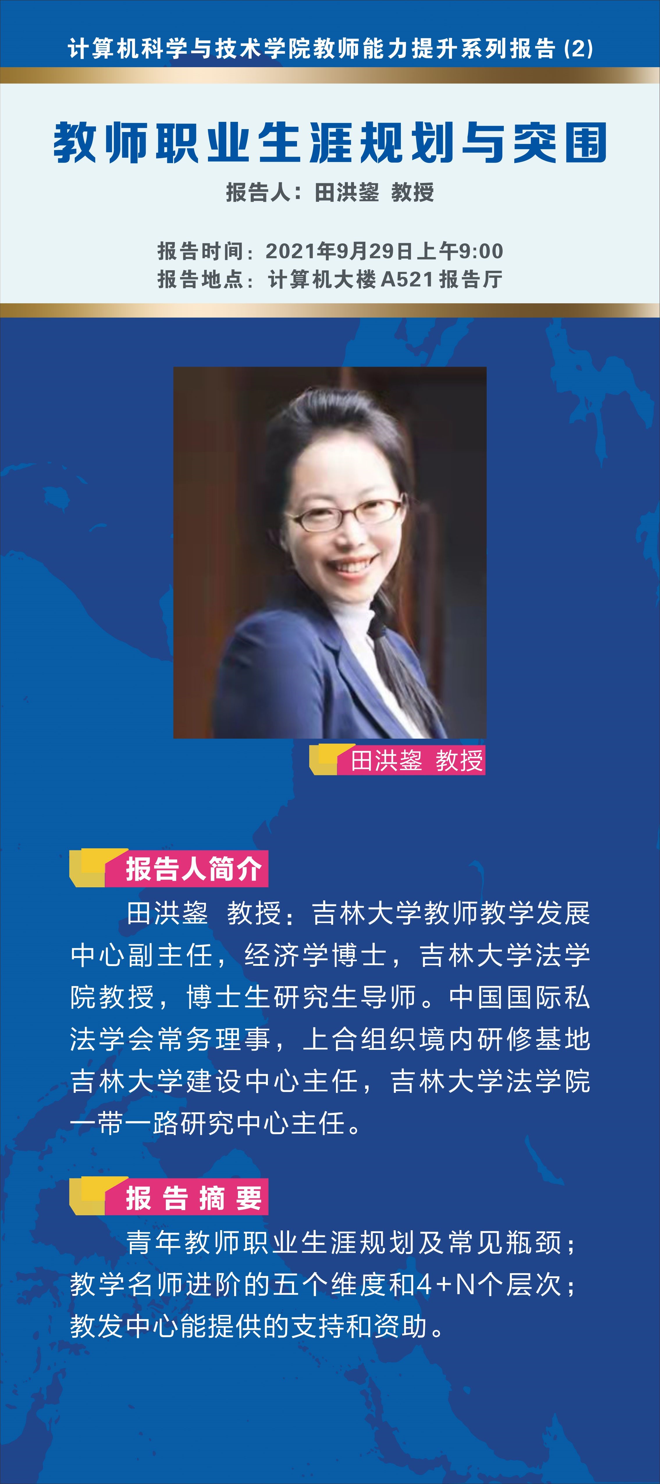 2021年9月29日上午,sunbet申搏官方网站田洪鋆教授应sunbet申搏官方网站邀请,在sunbet申搏官方网站中心校区计算机楼A521报告厅作了题为“教师职业生涯规划与突围”的专题报告,这是计算机学科教师能力提升系列报告的第二场报告,报告由sunbet申搏官方网站副院长张永刚教授主持,计算机学院、软件学院共30余名教师参加了此次报告会。