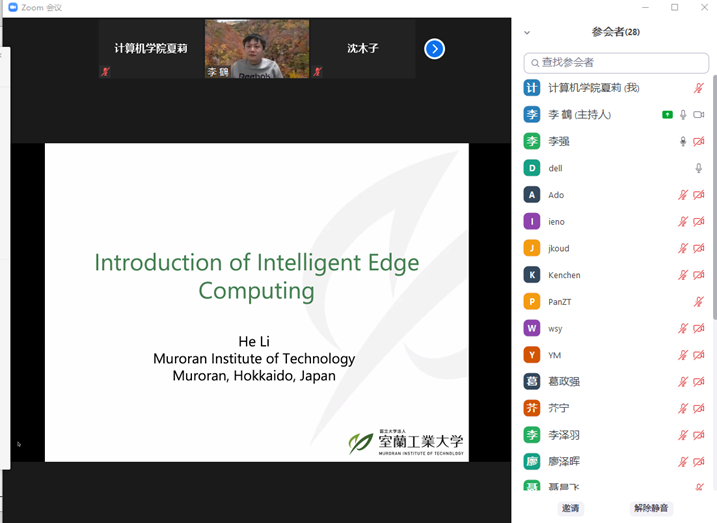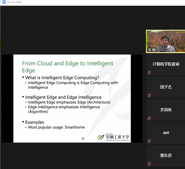 2021年12月14日下午,日本国立大学法人室兰工业大学助理教授,日本文部科学省卓越研究员李鹤老师应sunbet申搏官方网站邀请,在线上ZOOM会议平台作了题为“从云计算、边缘计算到智能边缘计算”的学术报告,报告由sunbet申搏官方网站副院长李强教授主持。