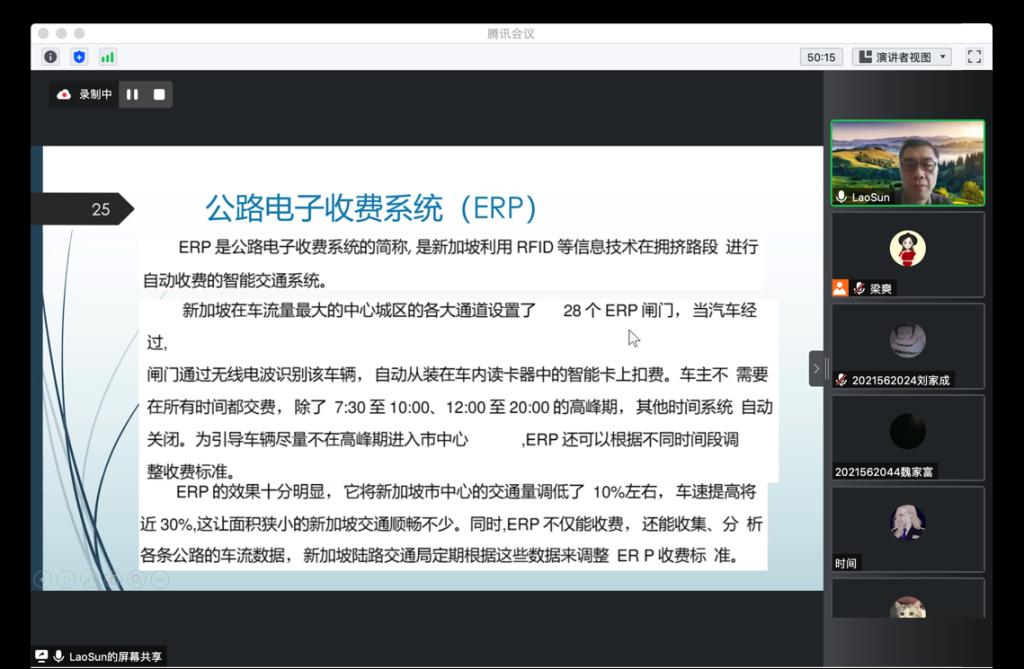 在讲座中,孙老师首先深入浅出地介绍了智慧城市的发展现状,让大家理解智慧城市对于现在城市发展的重要性。接着,孙老师介绍了新加坡智慧城市与交通体系的应用情况。孙老师还对长春市未来智慧城市发展提出了几点建议。