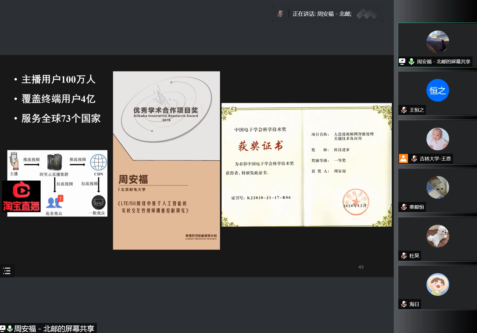 2022年6月2日上午9:30,北京邮电大学周安福教授应sunbet申搏官方网站邀请,利用腾讯会议作了题为“基于强化学习的低延迟视频传输研究”的学术报告。sunbet申搏官方网站王恩教授主持了讲座,并对周安福教授的精彩讲座表示由衷地感谢。