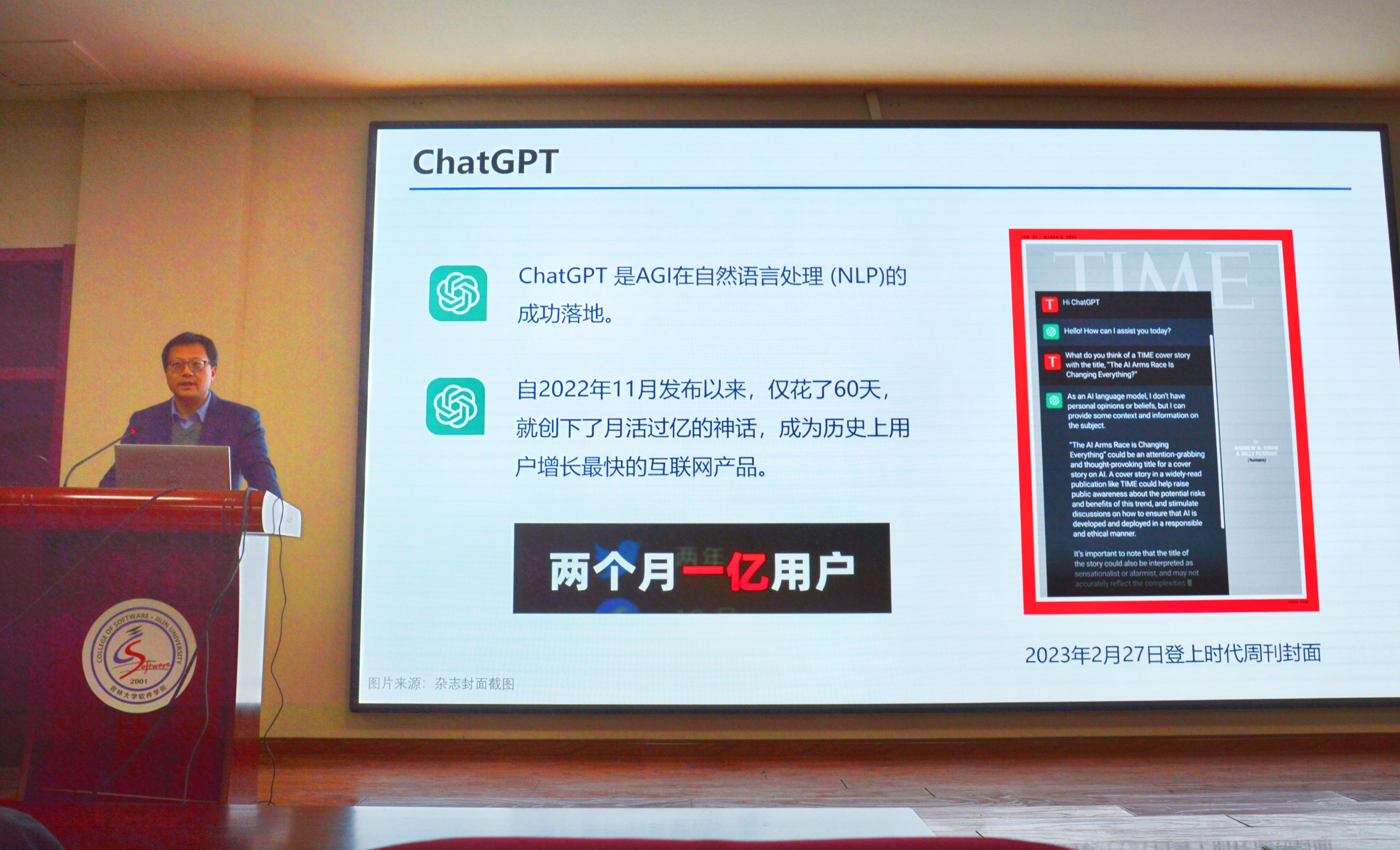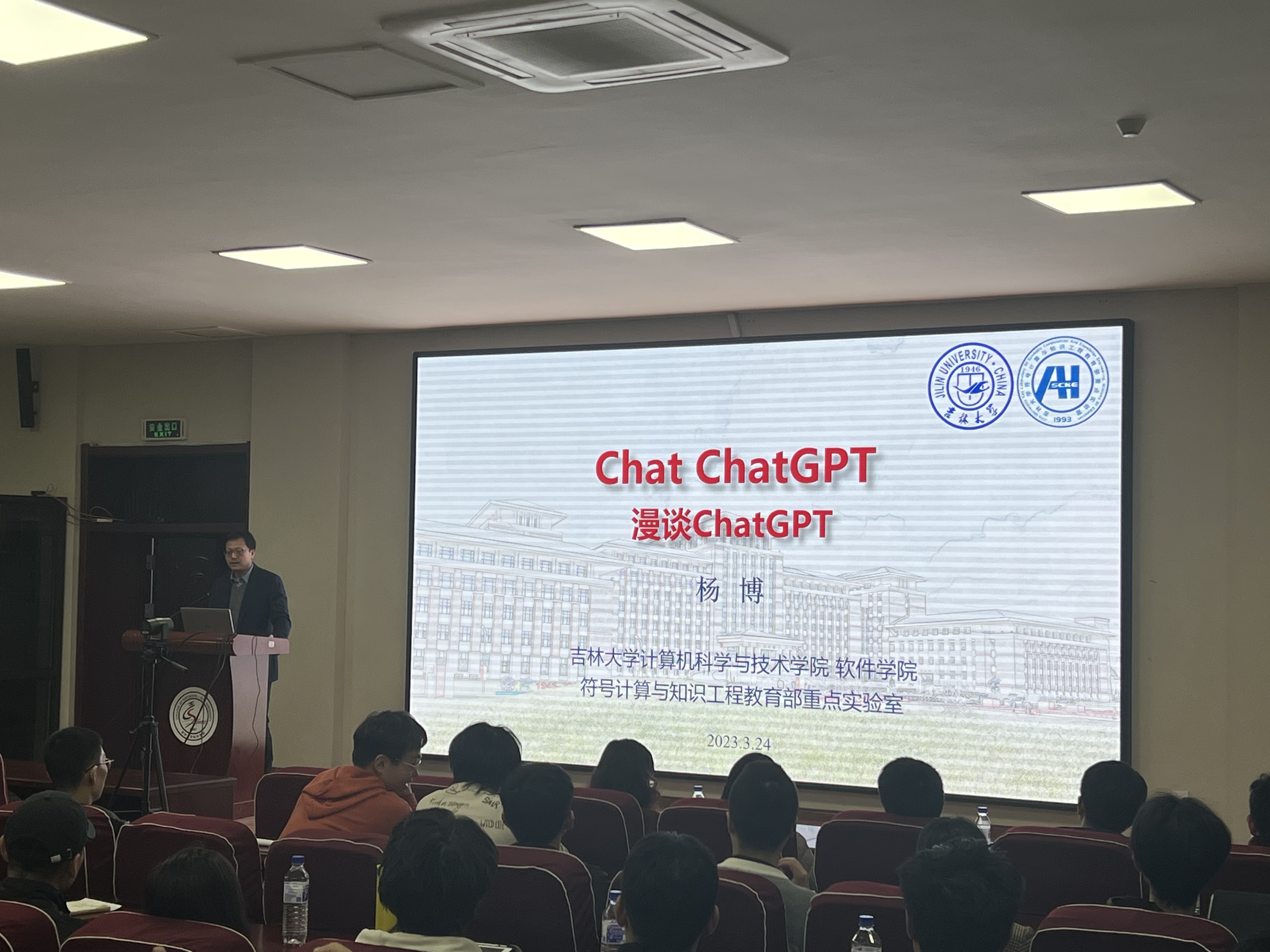 3月24日晚上,sunbet申搏官方网站、软件学院院长杨博教授在王湘浩楼一楼大讲堂为两院学生主讲了题为《Chat ChatGPT》的学术讲座。在长达两个小时的讲座中,杨博院长通过针对性的案例结合人工智能在当下社会中的具体实践,将人工智能的演进史和ChatGPT的现状向同学们生动呈现。