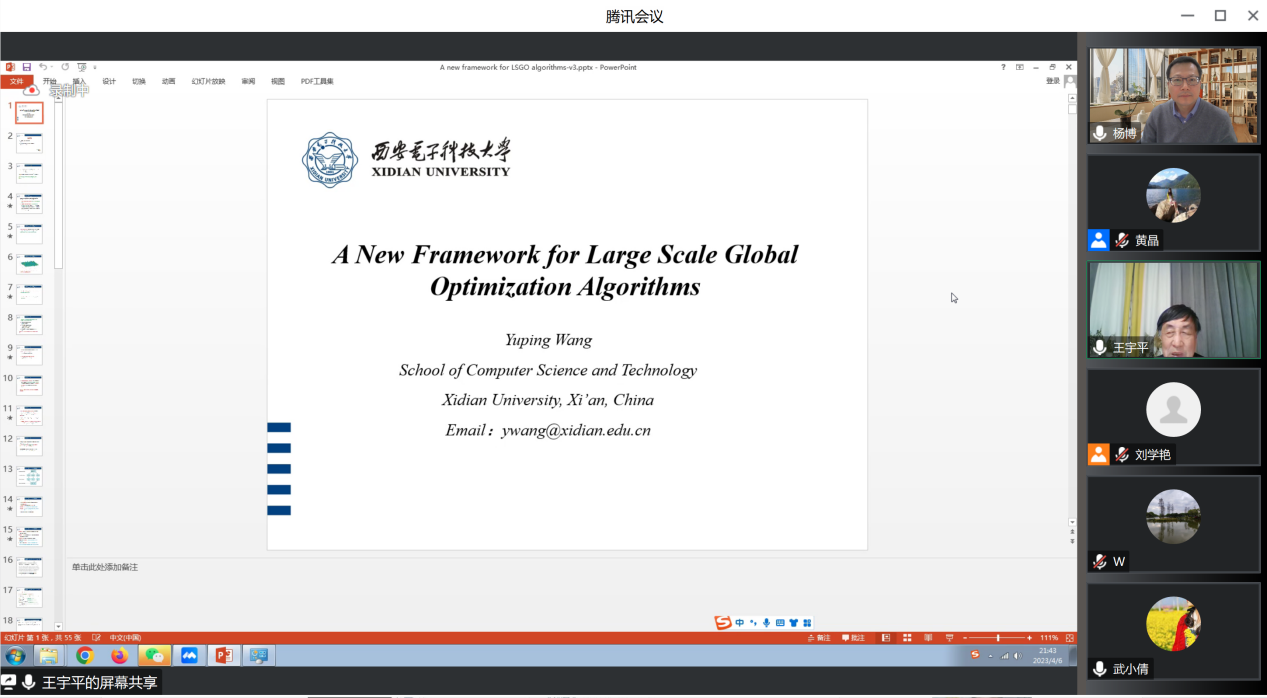 2023年4月6日晚上,西安电子科技大学王宇平教授应sunbet申搏官方网站邀请,以线上腾讯会议的形式为sunbet申搏官方网站和软件学院的师生作了题为“大规模全局优化的一个新框架”的学术报告。报告由sunbet申搏官方网站院长杨博教授主持。