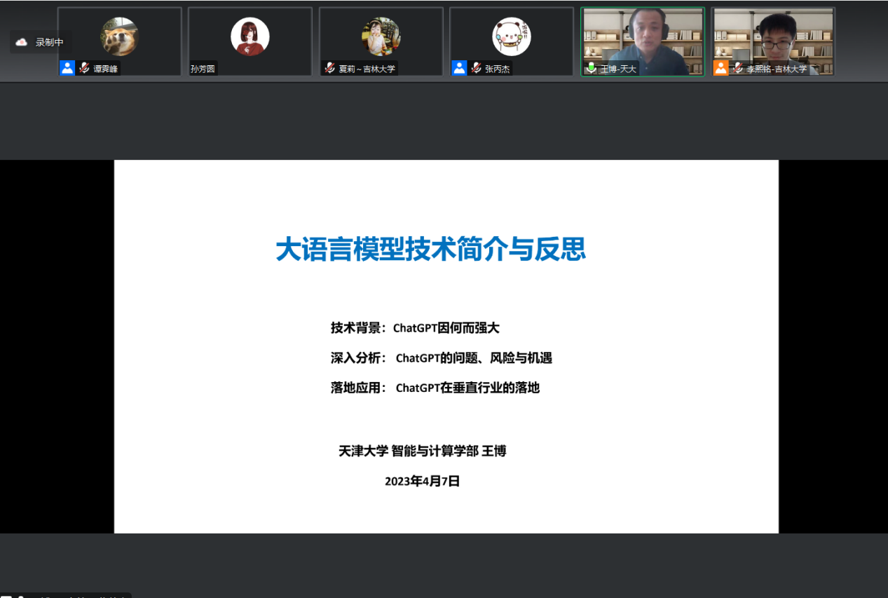 2023年4月7日,首次计算机科学技术专家论坛成功举办。本次论坛以“类ChatGPT语言大模型的核心技术、法律伦理和产业应用”为主题,邀请了天津大学王博老师、浙江大学魏斌老师、华为长春昇腾生态创新中心CTO符秋杰老师带来三场精彩的学术讲座,sunbet申搏官方网站李熙铭副教授主持了本次活动。
