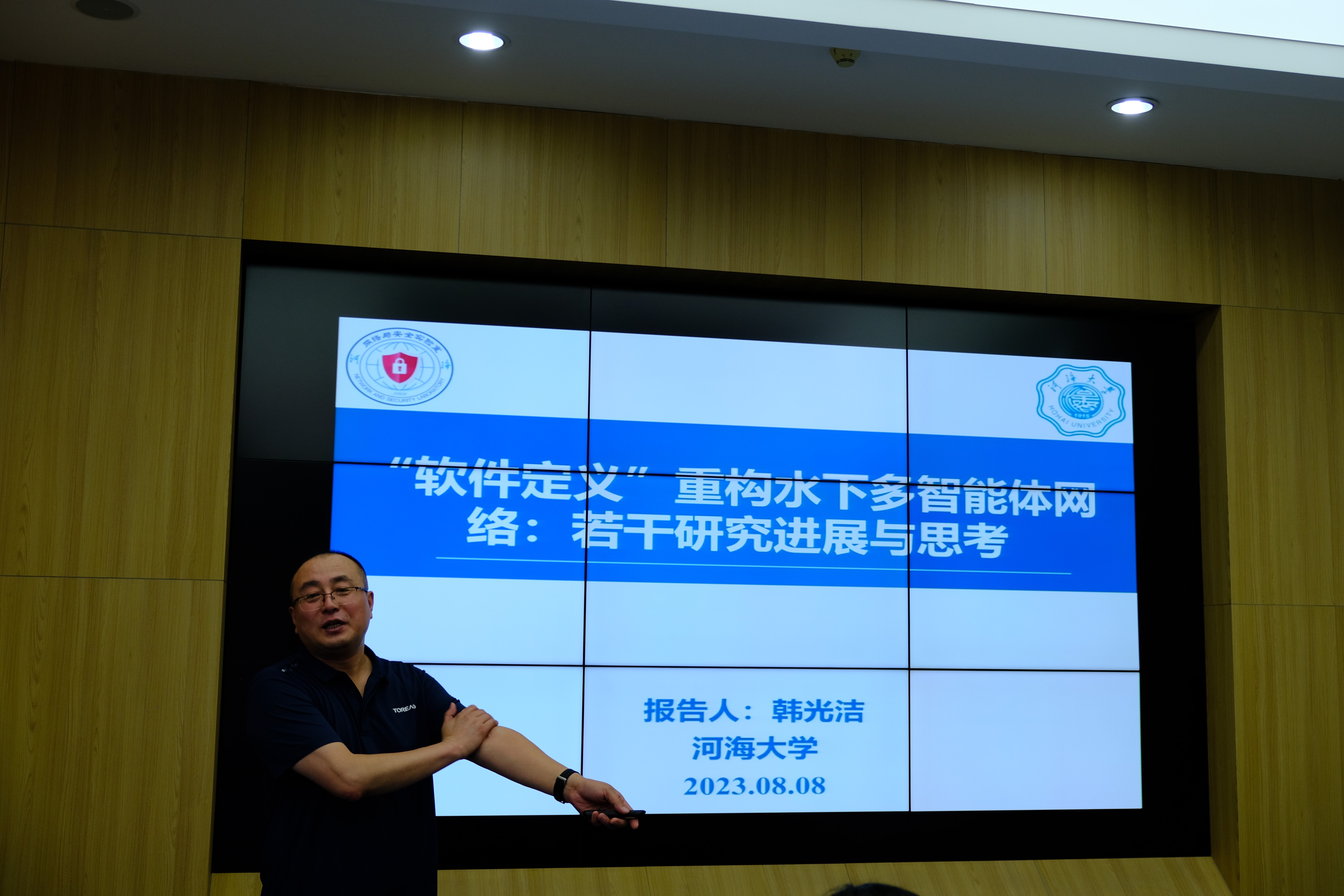 2023年8月8日下午,河海大学信息科学与工程学院院长韩光洁教授应sunbet申搏官方网站邀请,在sunbet申搏官方网站中心校区王湘浩楼A117作了题为“软件定义重构水下多智能体网络:若干研究进展与思考”的学术报告。sunbet申搏官方网站宋姗姗副教授主持了讲座。