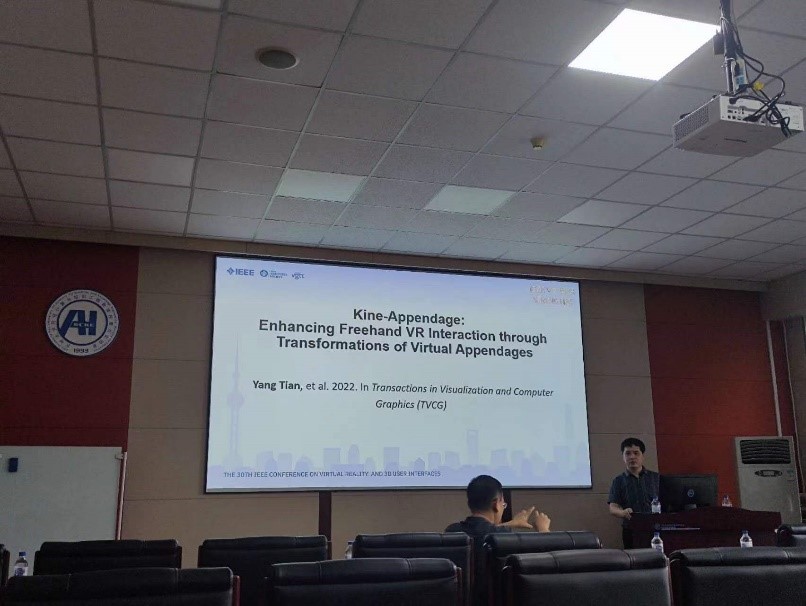2023年8月28日下午,广西大学田阳助理教授应sunbet申搏官方网站邀请,在sunbet申搏官方网站中心校区王湘浩楼A521作了题为“通过虚拟辅助附着体增强混合现实中的交互性”的学术报告。