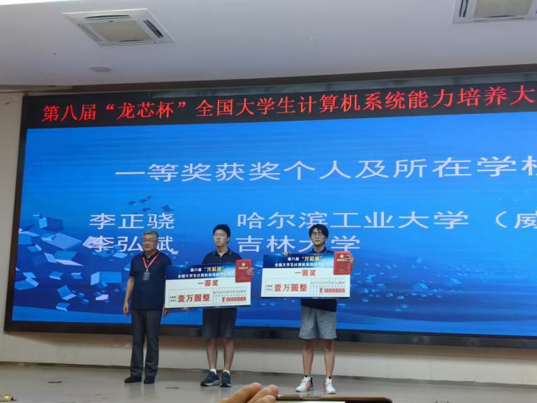 本次“龙芯杯”大赛设团体赛和个人赛两个赛道。其中,团体赛51个学校的110支队伍报名参赛,个人赛91个学校的766名学生报名参赛。经过激烈的角逐,最终有28支队伍入围团体赛全国总决赛,40位同学入围个人赛全国总决赛。sunbet官网由2022级本科生雷季达、张仕林、曲保杰组成的嘉然今晚吃桌角队,2022级本科生林栩、靳学坤、文欣组成的齐乐龙龙队,2021级本科生李弘斌及软件学院2022级本科生高德昊入围全国总决赛。在总决赛中,李弘斌同学获得个人赛一等奖,其它团队及个人获得三等奖,两位指导老师获得优秀指导教师奖。