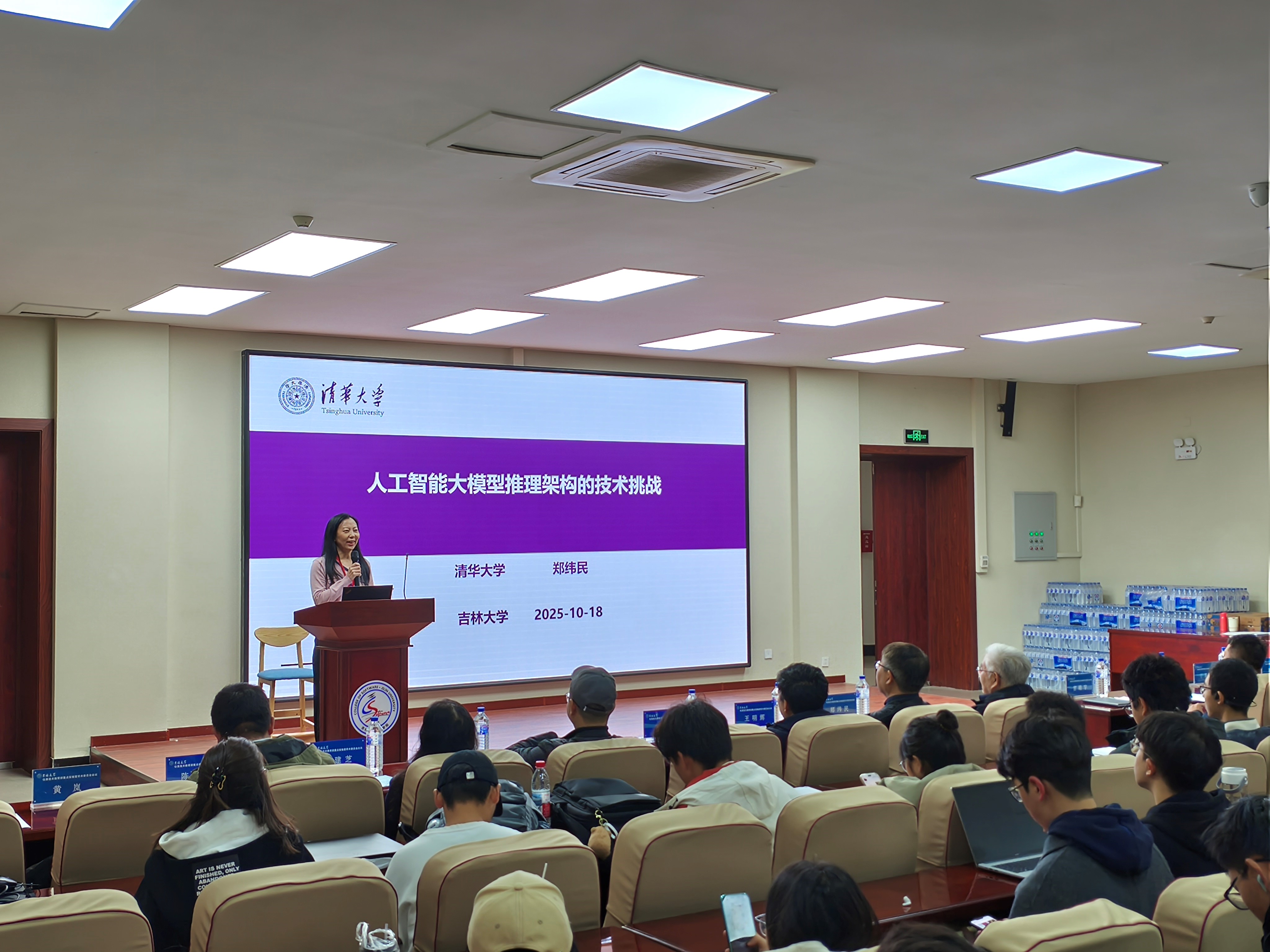 2025年10月18日上午,中国工程院院士、清华大学计算机系郑纬民教授做客sunbet申搏官方网站鼎新讲座,以“人工智能大模型推理架构的技术挑战”为题,为吉大师生带来了一场精彩的学术讲座。sunbet申搏官方网站党委书记宫皓宇致欢迎辞并为郑纬民院士颁发“鼎新讲座纪念牌”,sunbet申搏官方网站仿真技术教育部重点实验室主任、sunbet申搏官方网站黄岚教授主持了讲座。