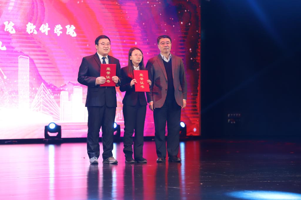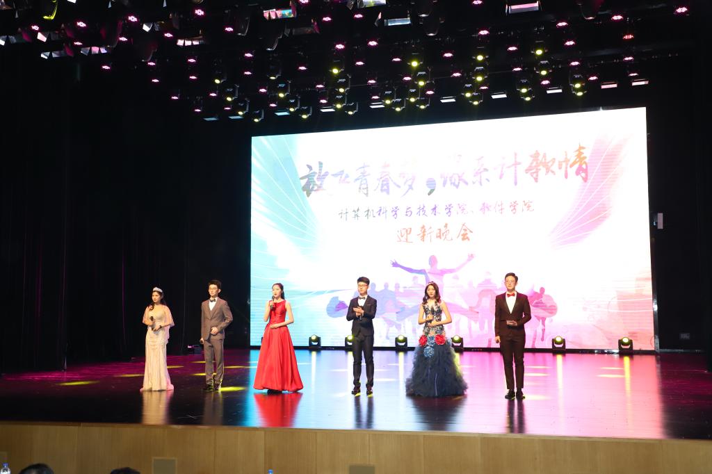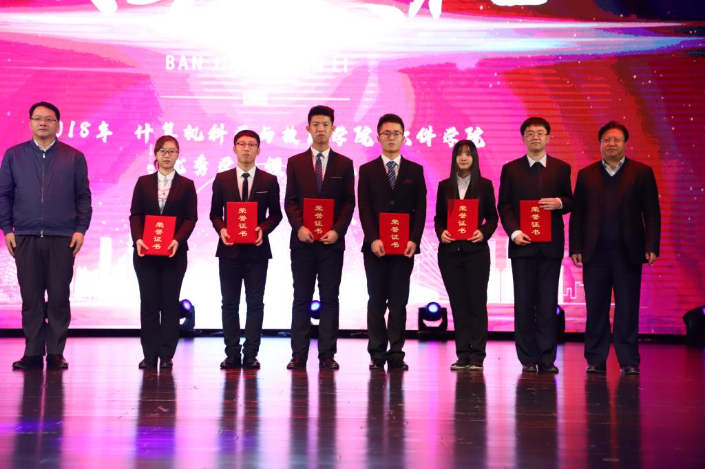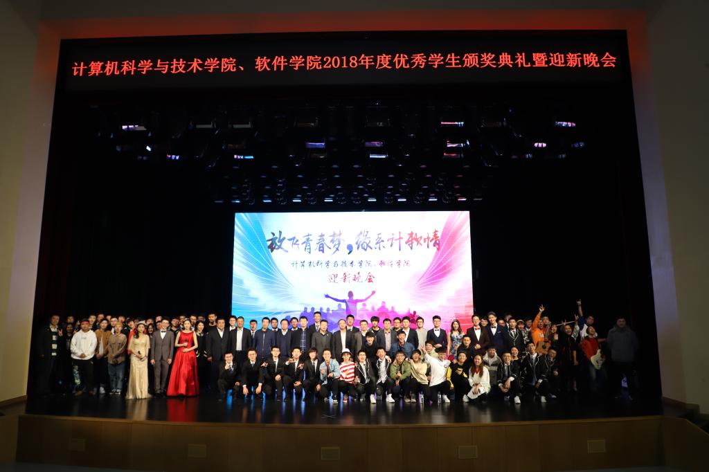 2018年12月17日晚18:00,sunbet申搏官方网站、软件学院在鼎新大讲堂联合举办了2018年度优秀学生颁奖典礼暨“放飞青春梦,缘系计软情”迎新晚会。出席晚会的嘉宾有学生工作部部长张国兴老师,研究生工作部副部长赵玥老师,教务处处长刘鹤老师,保卫处处长宫皓宇老师,学生就业创业指导与服务中心主任钟新老师,校团委书记代磊老师,sunbet申搏官方网站党委书记孟繁二老师,sunbet申搏官方网站、软件学院院长魏晓辉教授以及两院党政领导班子,教职工代表及全体2018级新生。