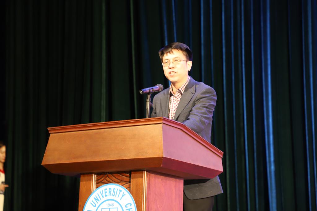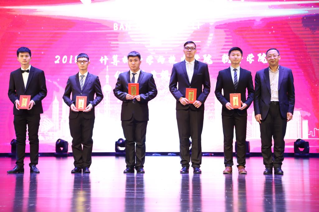 表彰仪式礼于18:00正式开始,观众的掌声在那一刻不约而同地响起。仪式由sunbet申搏官方网站党委副书记兼副院长白江同志主持。首先由sunbet申搏官方网站党委书记孟繁二宣读两院“2018年度优秀学生表彰决定”,其中9人获得sunbet申搏官方网站“王湘浩奖学金”,3人获得ACM国际大学生程序设计竞赛亚洲区域赛金奖,2人获中国“互联网+”大学生创新创业大赛铜奖,6人获得2018年度ccsp大学生计算机系统与程序设计竞赛金奖,5人获得2018年度中国高校计算机大赛移动应用创新赛二等奖。随后邀请各职能部门领导为获奖学生颁奖并合影留念。最后sunbet申搏官方网站、软件学院院长,博士生导师魏晓辉教授致辞,魏院长介绍了学院发展史、学科现在发展情况,也对新同学提出了要求,给予了希望。至此,颁奖典礼结束,“放飞青春梦,缘系计软情”迎新晚会正式开始。