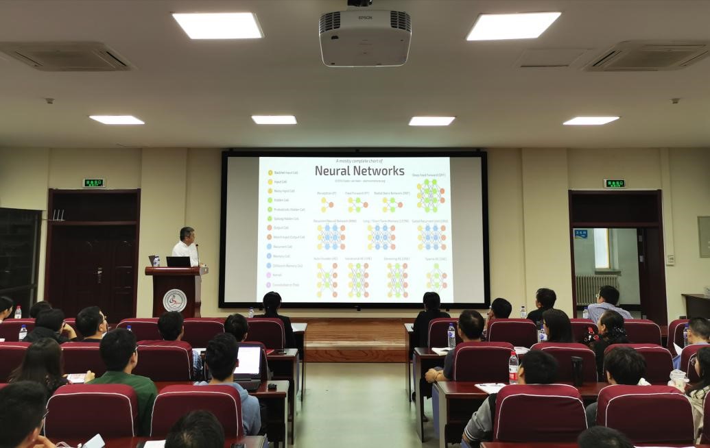 在本次报告中,许东教授先从神经网络出发,让大家了解神经网络的概貌,然后许东教授仔细讲解了residual/dense networks、inception networks、light networks、R-CNN、graph neural network和hybrid networks六种神经网络及其它们发展和改进。在报告中,对于不同的神经网络,许东教授也介绍了他们团队利用这种网络进行的研究工作,并提出了他对于这些网络及问题的看法。此外,在如何挑选论文,设计神经网络的原则等问题上,许东教授给大家分享了他的观点和经验。在报告过程中,许东教授每讲完一种神经网络,就停下来和在场的老师和同学交流,悉心回答他们提出的问题。本次报告受到了广大师生的热烈响应,将近三个小时的学术报告不仅让大家增长了见识,也让大家对神经网络的设计和应用有了进一步的了解与思考。