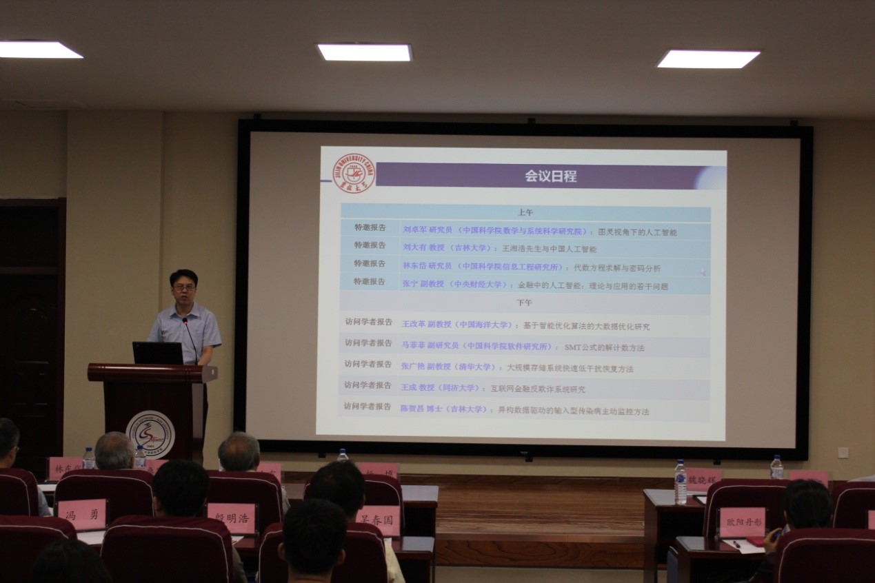 6月10日上午,吴文俊院士生前优秀博士毕业生、中国科学院数学与系统数学研究院创始副院长、符号实验室学术委员会委员刘卓军研究员,sunbet申搏官方网站符号实验室学术委员会副主任刘大有教授,信息安全国家重点实验室常务副主任、中国科学院信息工程研究所林东岱研究员和中国科学院数学与系统科学研究院数学机械化研究中心优秀博士毕业生、中央财经大学张宁副教授分别作了报告。刘卓军研究员的报告题目是“图灵视角下的人工智能”,他简要介绍了吴文俊的生平,回顾了吴文俊院士在定理机器方面做出的杰出贡献,然后从图灵的视角对人工智能的发展进行了深入的分析。他进一步指出,在人工智能蓬勃发展的今天,大学和研究机构更应坚持在基础理论和算法研究上发力,有积累进而才有机会,吴文俊、王湘浩等老一代科学家的远见卓识必将伴随着中国人工智能事业深入发展而彰显更大的价值。刘大有教授的报告题目是“王湘浩先生与中国人工智能”,他深情回顾了中国人工智能奠基人、杰出数学家、教育家、计算机科学家、红学家、sunbet申搏官方网站计算机学科奠基人王湘浩院士的壮丽人生,并重点介绍其在关键时刻与吴文俊院士、陆汝钤院士共同为推动中国人工智能发展所做出的卓越贡献。刘东岱研究员的报告题目是“代数方程求解与密码分析”,报告从流密码算法的代数攻击出发,介绍代数攻击的思想、方法以及由此产生的密码设计新准则。张宁副教授的报告题目是“金融中的人工智能:理论与应用的若干问题”,报告基于讲者在人工智能在金融方面应用的相关理论和应用的工作经验,从行业角度、学术角度和监管角度对两者融合提出了12个问题,并对这些问题在不同程度上提供了一些解决途径、探索和思考。