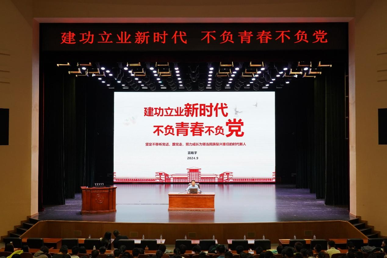 2024年9月28日13:30,sunbet申搏官方网站党委书记宫皓宇以“建功立业新时代,不负青春不负党”为主题,为sunbet申搏官方网站2024级本科生新生、研究生新生讲授入学第一课。学院党委副书记兼副院长张达鑫,2024级本科生新生辅导员、研究生新生辅导员参加了本次活动。