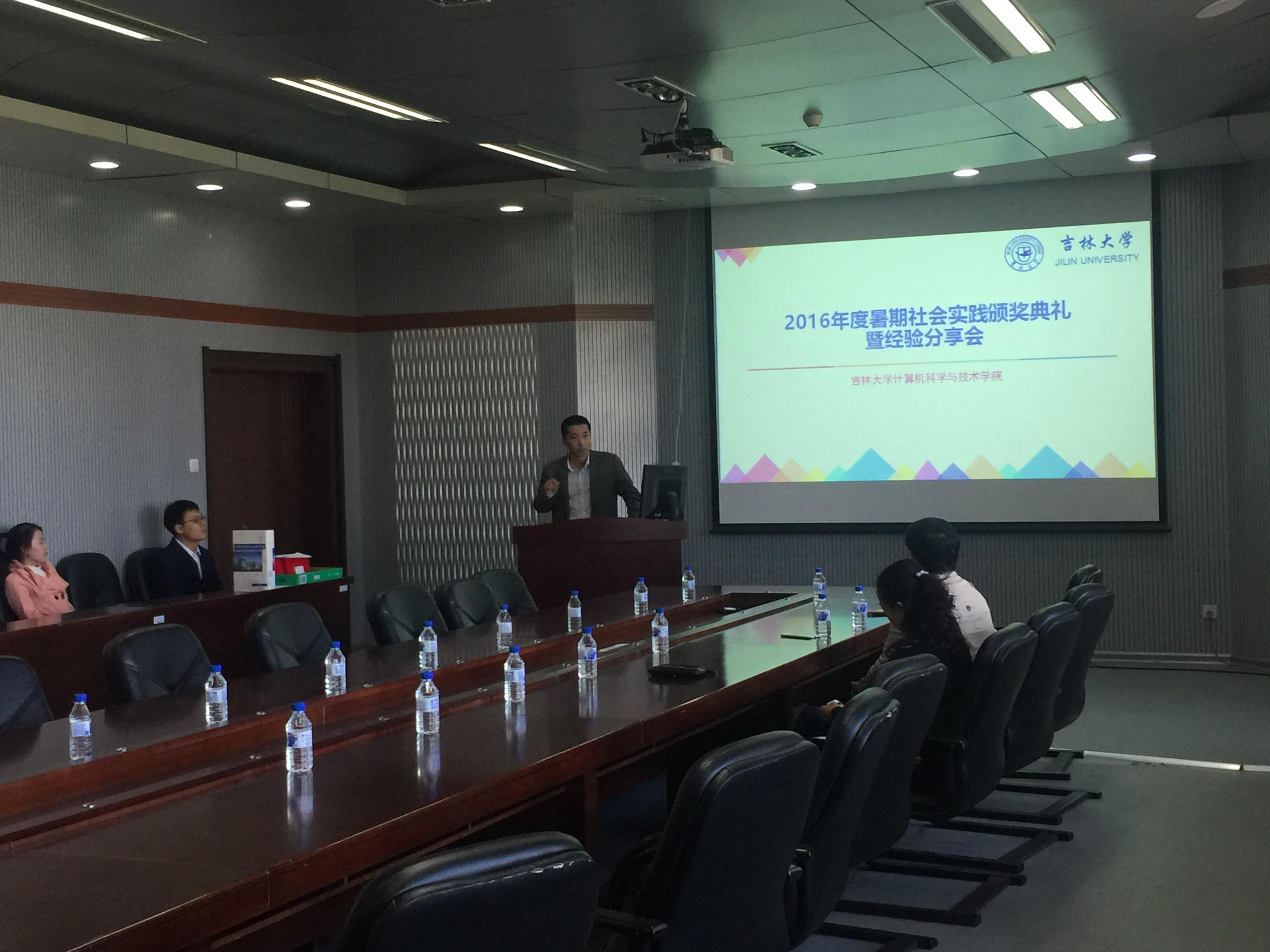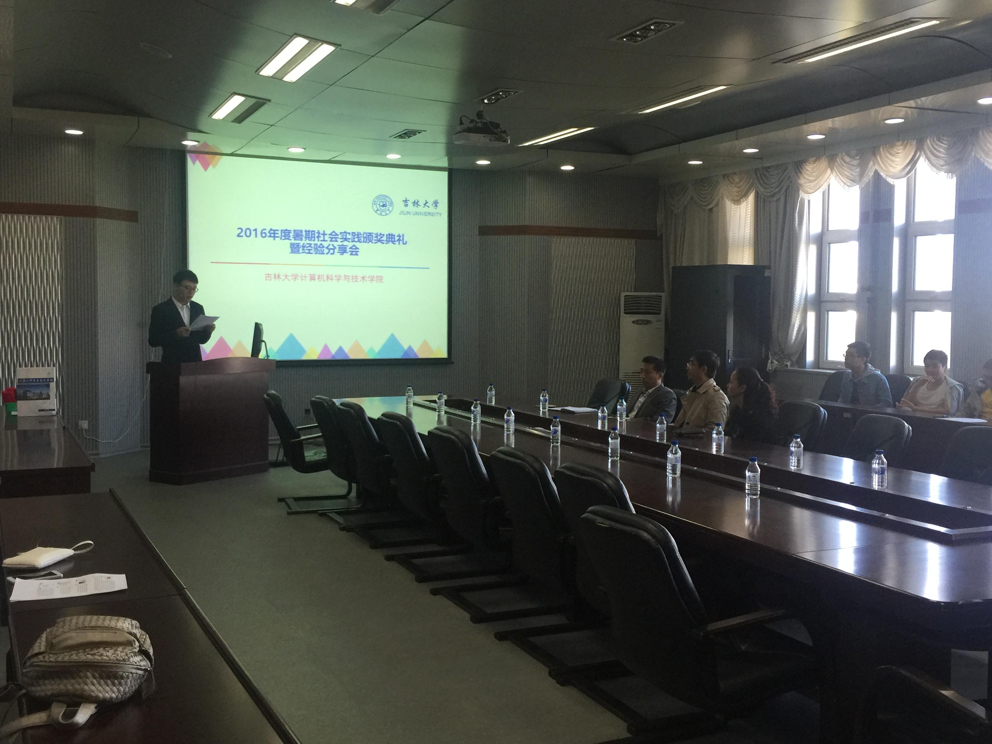 9月29日上午9:00,2016暑期社会实践颁奖典礼暨经验分享会在计算机楼A515隆重举行,计算机学院党委书记郑爽老师,党委副书记杜天宝老师,哲学与社会学学院张霁雪老师出席了本次活动,活动由计算机学院团委研究生会主席宋健主持。