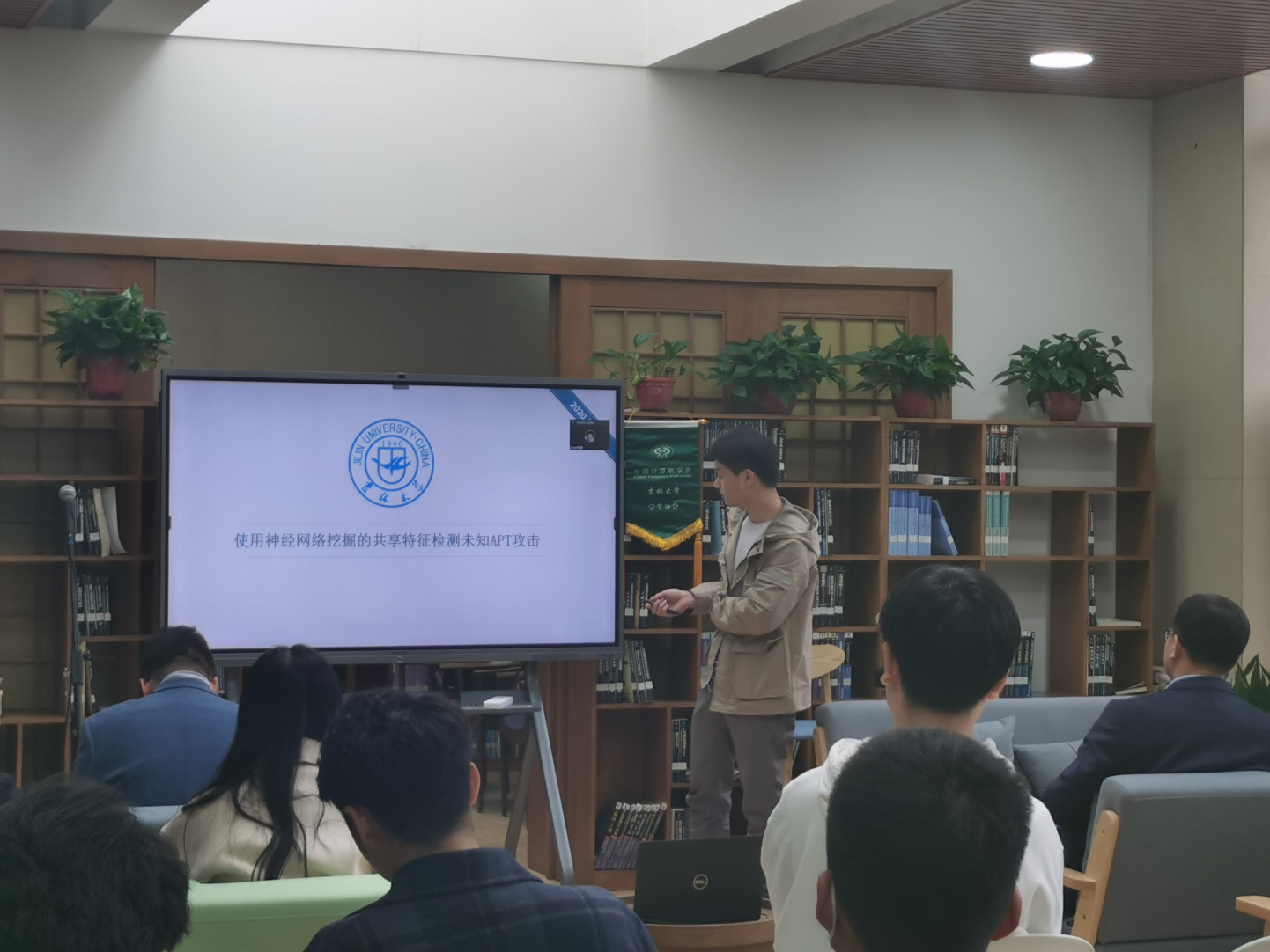 杨院长致辞结束后,活动进行到第二项,本期沙龙的两位讲者岳恒山和尚龙康分别就自己的科研成果作了报告,并在会后与同学们开展了热烈的学术问答与科研经验的交流。岳恒山博士说到,我们在进行学术研究时首先要找到边界,要多看高水平论文,优先选择高质量会议的论文,或者领域内专有会议的论文。通过两位讲者的分享,同学们不仅了解了他们所研究的内容,也学到了自己应该如何做研究的经验。