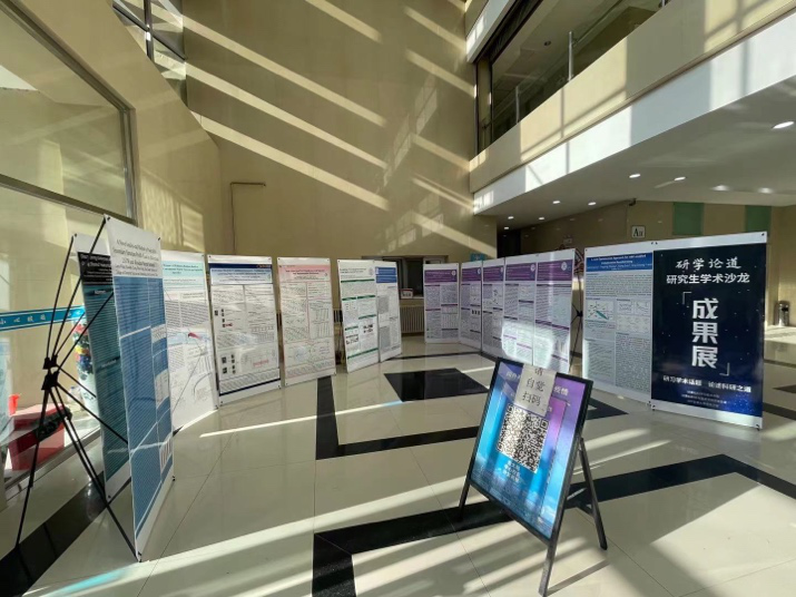 在会场外的计算机楼西门大厅,还举办了与学术沙龙同期举行的学术展,通过学术海报的形式,展示本次活动相关的高水平学术成果,海报共计近80张,同时,将通过轮展的方式定期更换。