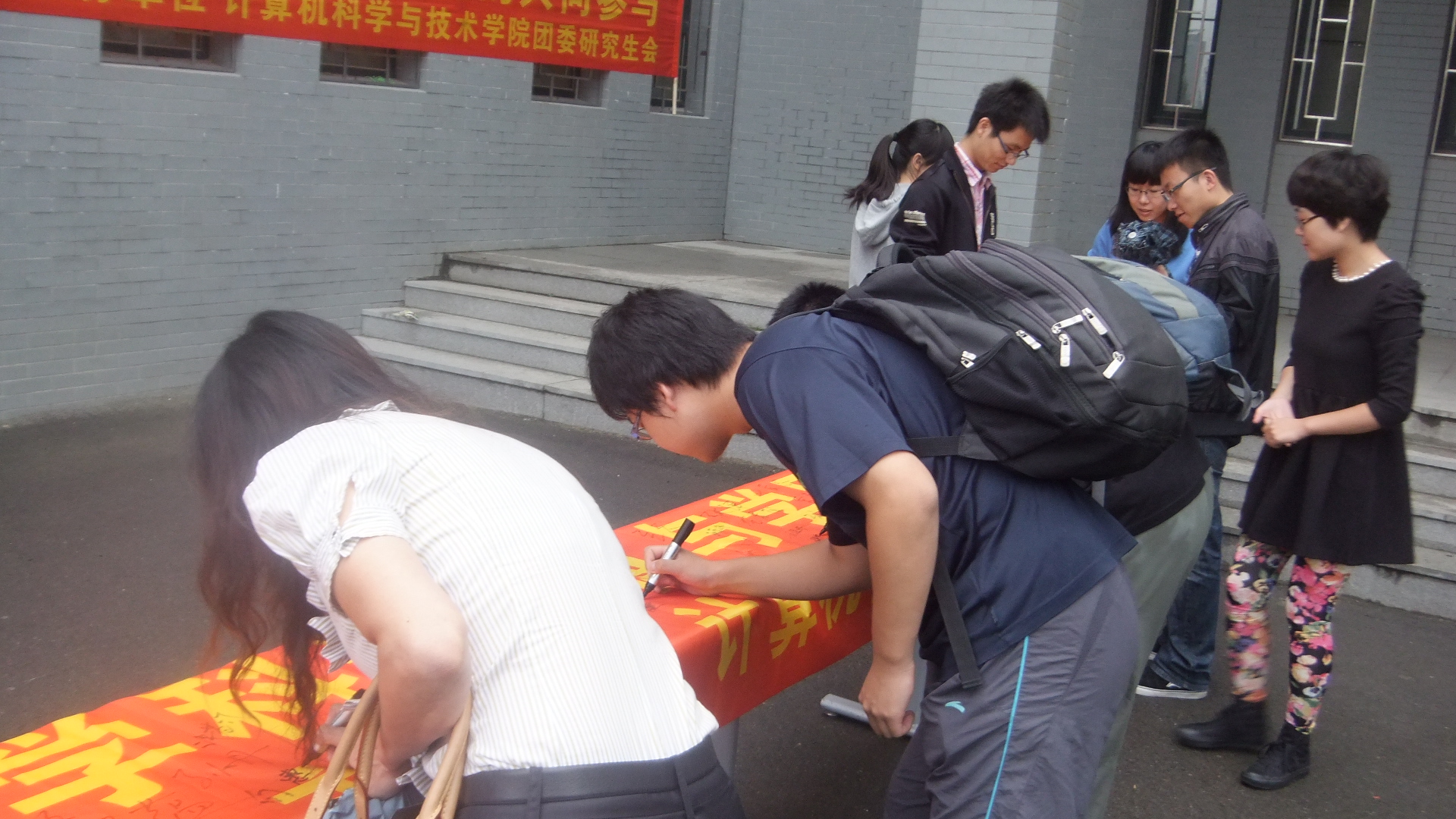 在十八大来临之际,为积极响应我校加强科学道德与学风建设的号召,大力弘扬科学道德、建立良好的学术风气,sunbet官网团委研究生会于9月12日,在计算机大楼门前举办了“做诚信学术以律己,传求是学风于万事”的签名活动。